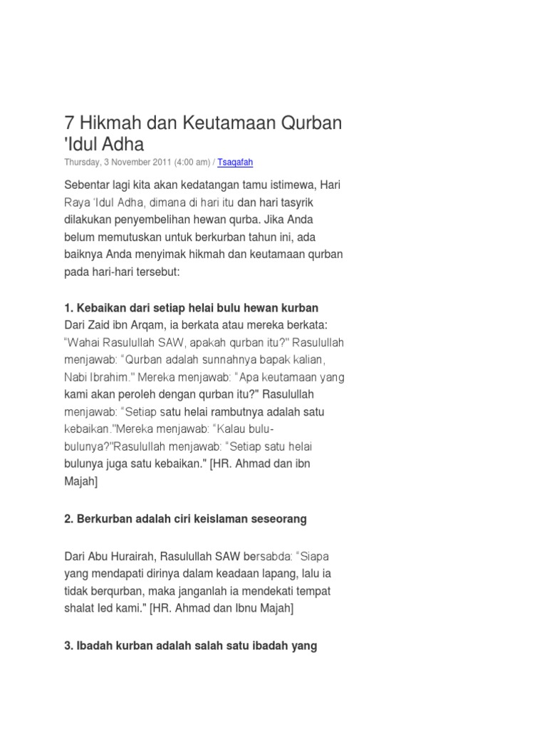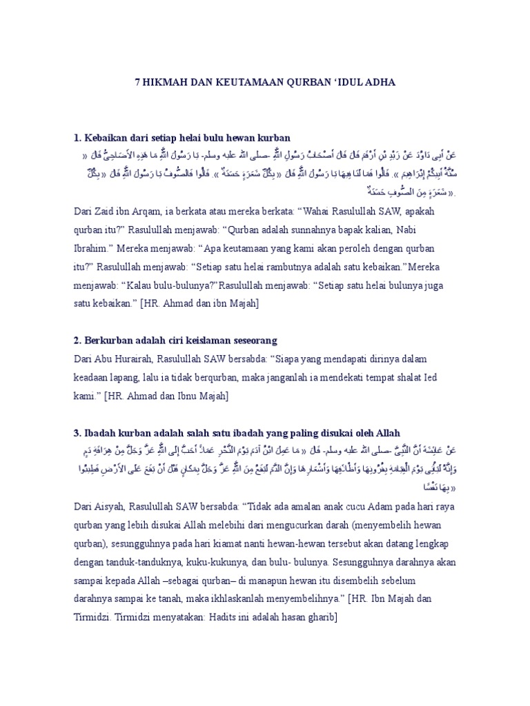 Hikmah qurban idul adha sangatlah mendalam dengan makna yang terkandung dibaliknya bagi kehidupan para umat muslim. Dengan hikmah dan nilai ibadah qurban. 7 hikmah dan keutamaan qurban idul adha november 23 2015 november 3 2011 by shabra syatila sebentar lagi kita akan kedatangan tamu istimewa hari raya idul adha dimana di hari itu dan hari tasyrik dilakukan penyembelihan hewan qurba.