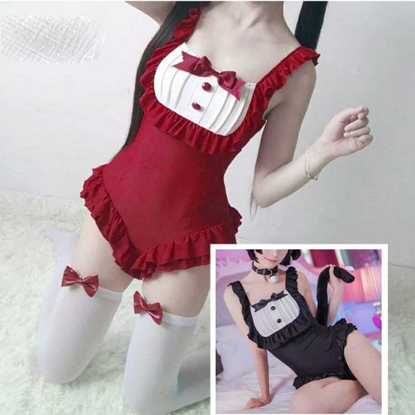 Japanese Sukumizu Swimsuit Cosplay Anime Kawaii Cat School Sexy Bikini Swimwear Women Girl Maid Dress Costume With Cat Tail Anime Cosplay Cosplay Wigs