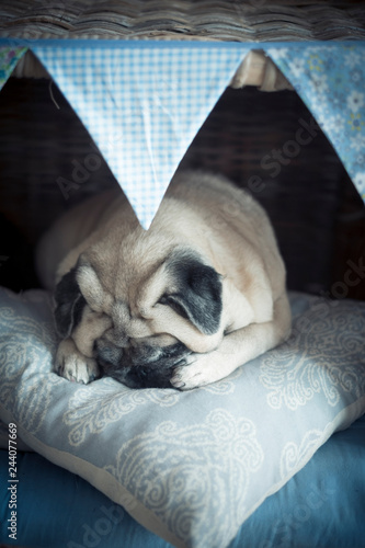 Adorable Lovely Puppy Pet Pug Dog Sleeping In Her Little