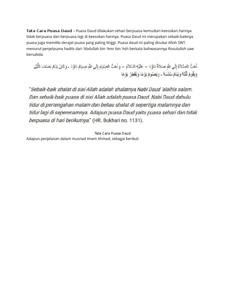 Tata Cara Puasa Daud Tata Cara Puasa Daud Puasa Daud Dil