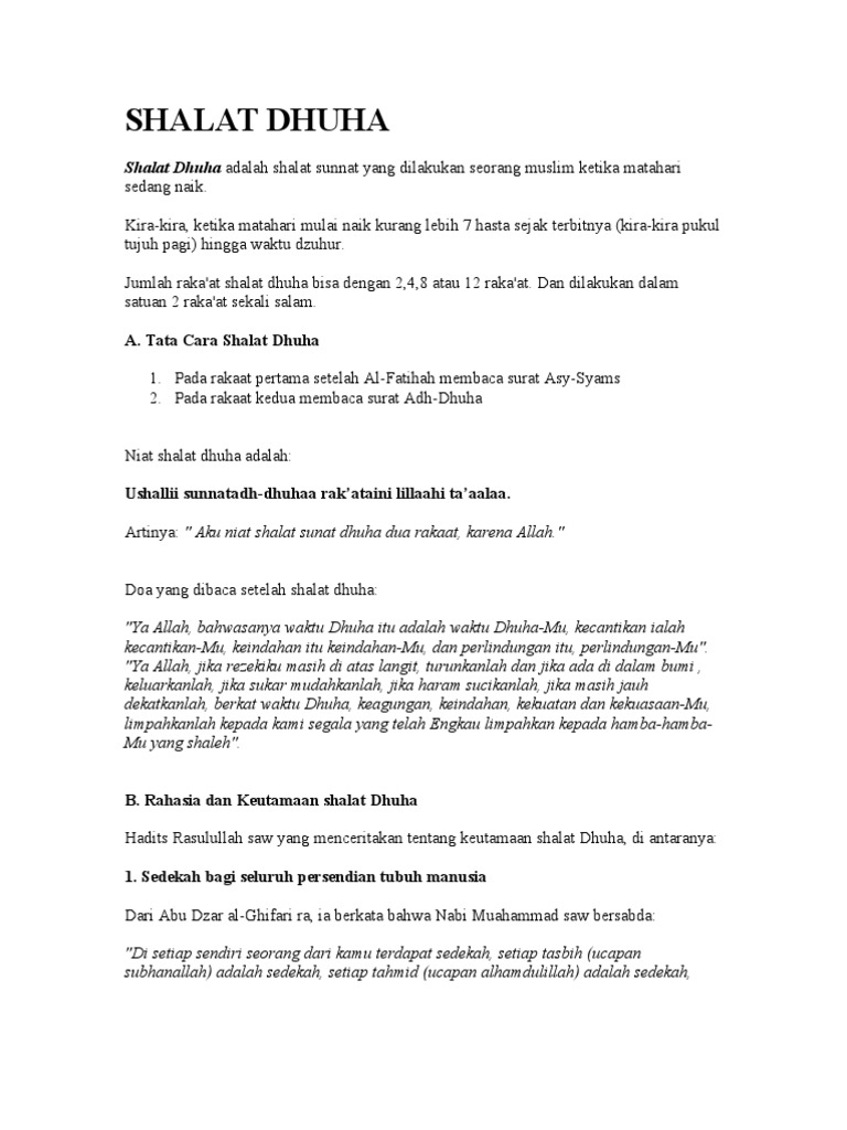 Dan dua rakaat dhuha sebanding dengan pahala semua itu 2. Subscribe subscribed unsubscribe 17k. Shalat dhuha merupakan shalat yang dilakukan untuk memohon rizki kepada allah swt.