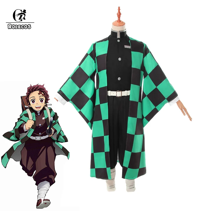 Rolecos Anime Costume Demon Slayer Cosplay Tanjirou Kamado Cosplay Costume Kimetsu No Yaiba Men Kimono Costume Halloween