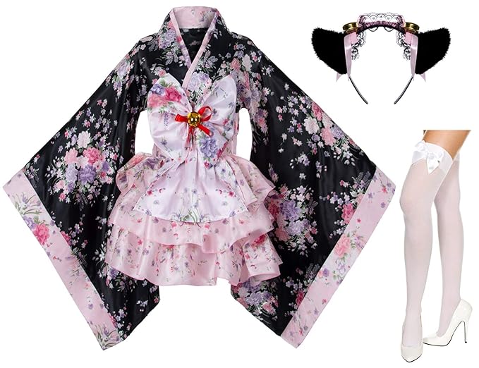 That would be a great deal for you to have your money not put into waste. Anshuo japanese sakura kimono anime cosplay costume lolita dress maid costume with socks for women and girls. We provide great quality kimono cosplay costumes at the best prices.