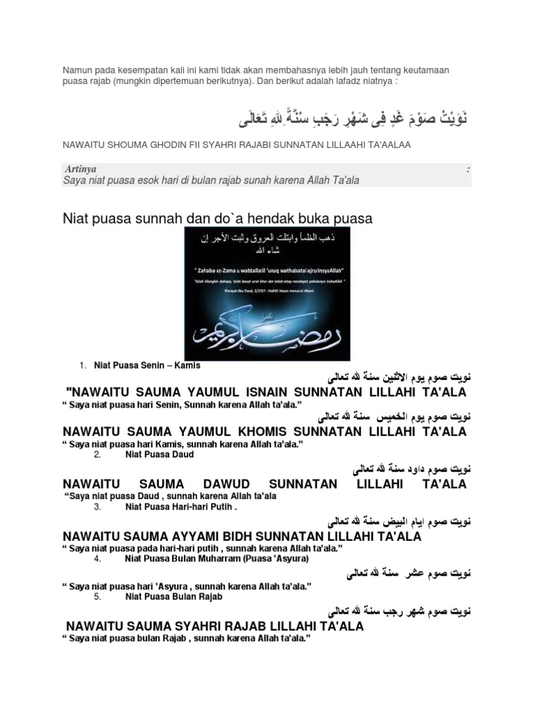 Niat Puasa Rejab Dan Tarikh Puasa Bulan Rejab 2019 1440h