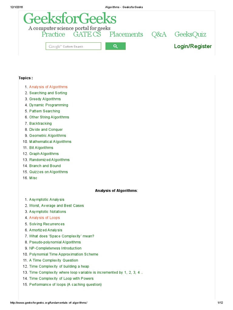Algorithms Geeksforgeeks Time Complexity Dynamic