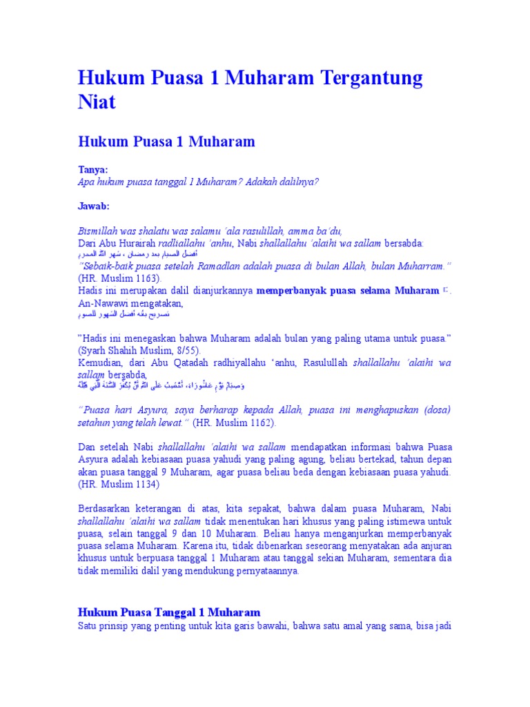 Muslim11630 mulla al qari menyebutkan bahwa hadits di atas sebagai dalil anjuran berpuasa di seluruh hari bulan muharram. Muhammad bin shalih al munajjid keywords sesungguhnya bulan allah muharram adalah bulan yang agung lagi penuh berkah. Pada bulan ini dilarang untuk melakukan hal hal seperti peperangan dan.