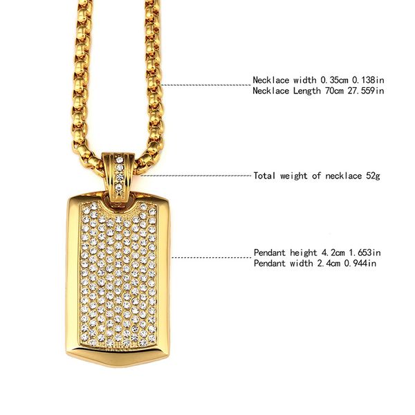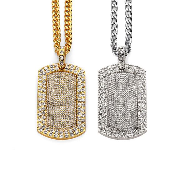Wholesale Fashion Men Hip Hop Dog Tag Necklaces Jewelry Full Rhineston Design Long Chains Filling Pieces Mens Rock Pendant Necklaces Diamond Pendant